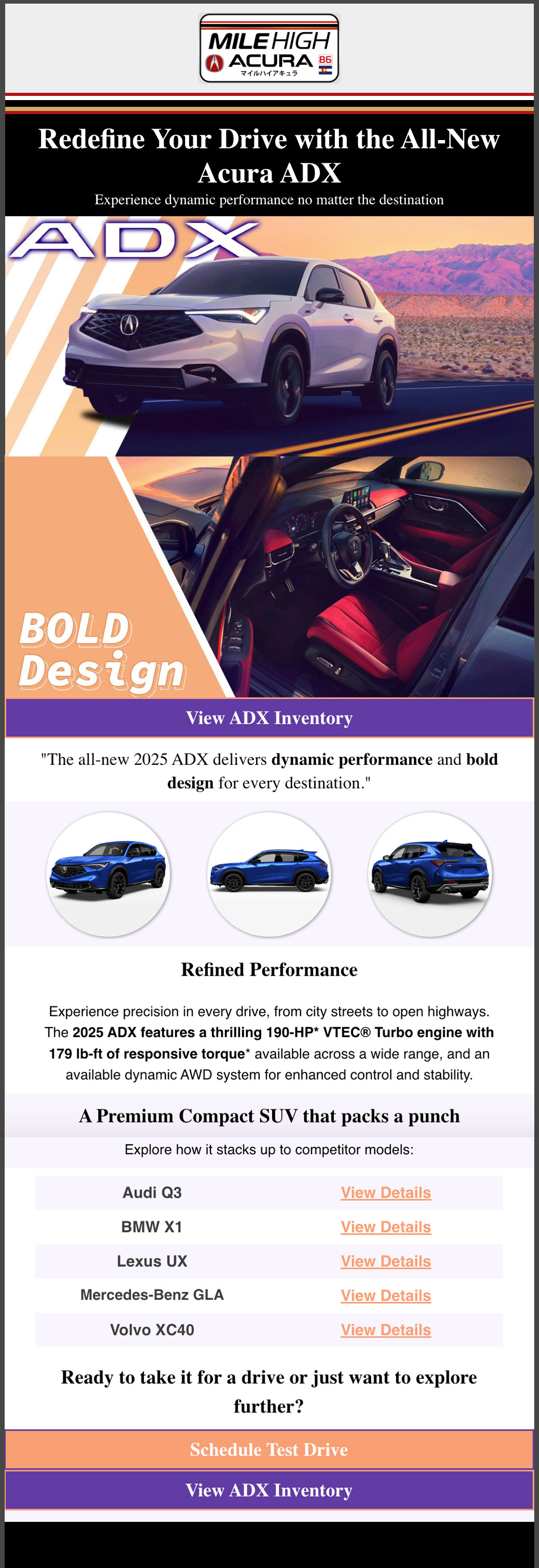 introduction of the new acura adx with features & competitor model comparisons