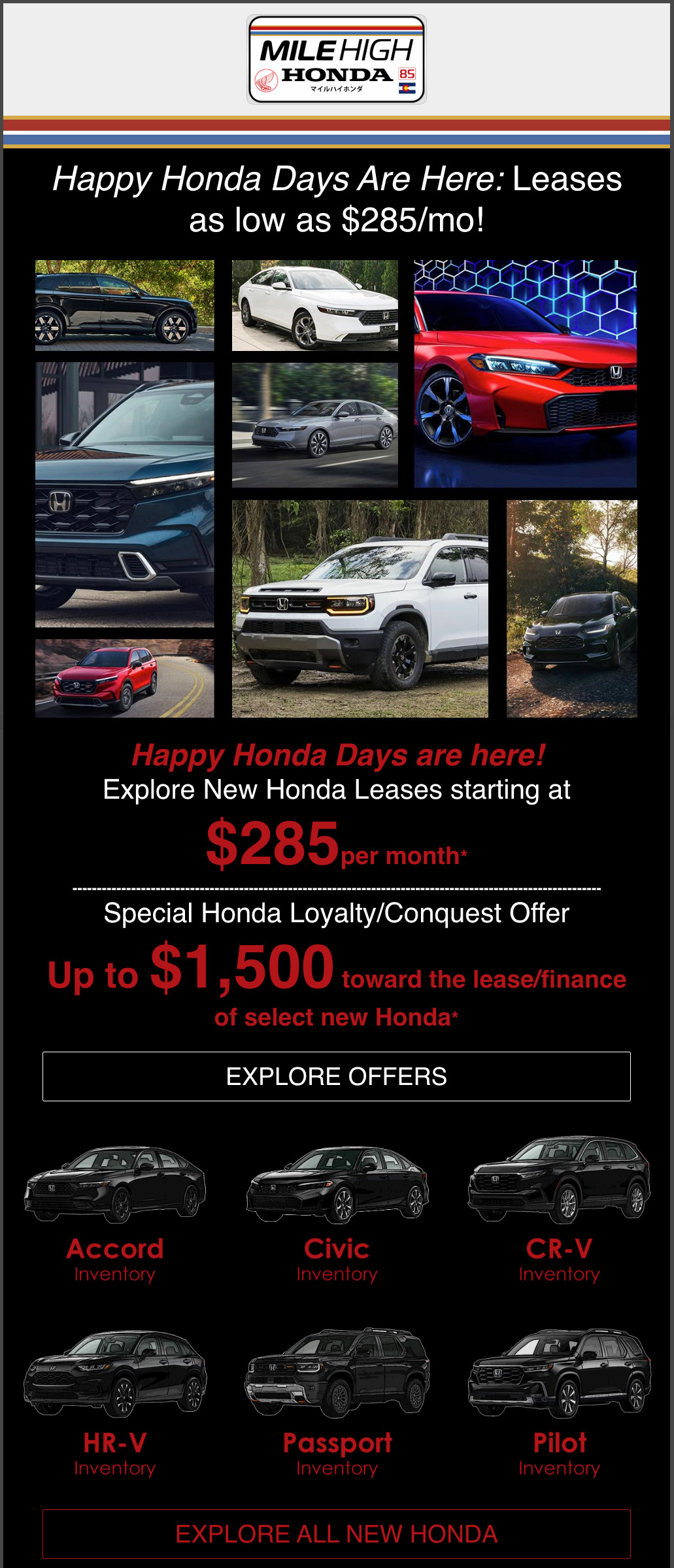 Happy honda days with featured lease offers email for mile high honda